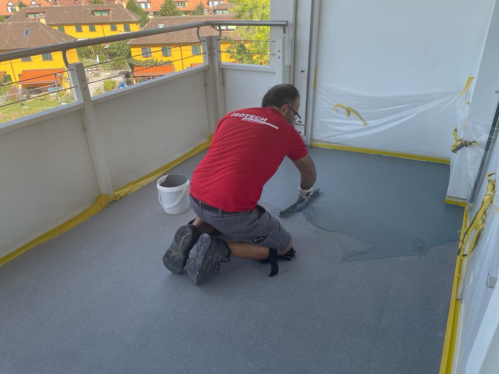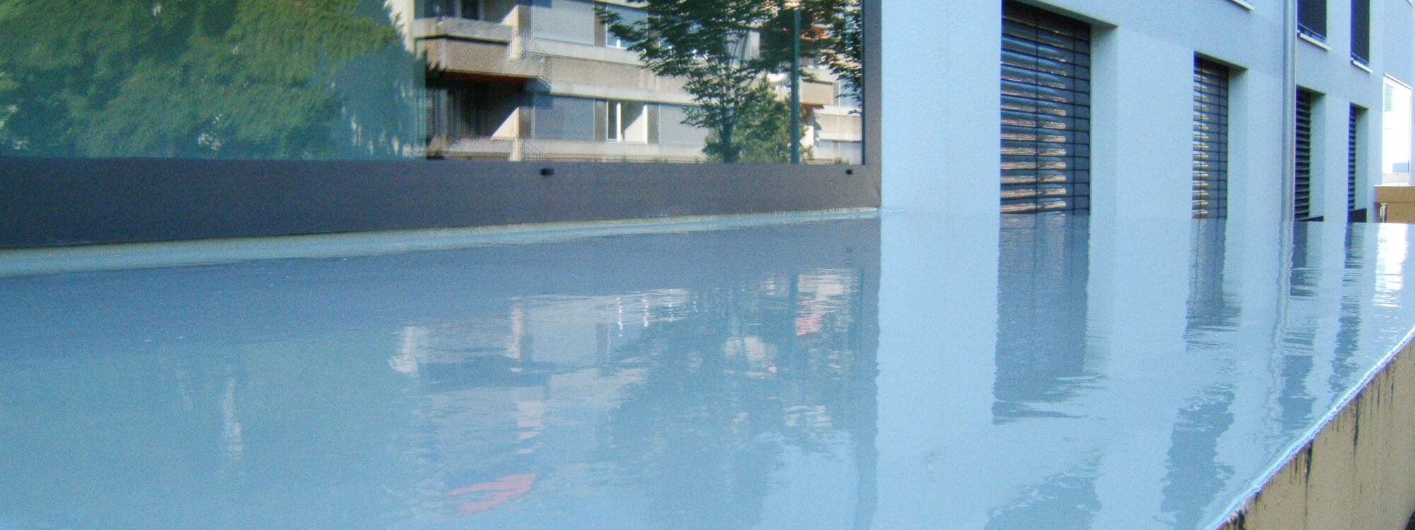 Mit unserer PMMA Flüssigkunststoffabdichtung dichten wir Flächen wie komplizierte Details und Abschlüsse dauerhaft unterlaufsicher ab. PMMA-Abdichtungen überbrücken sicher Bewegungen des Untergrundes.
